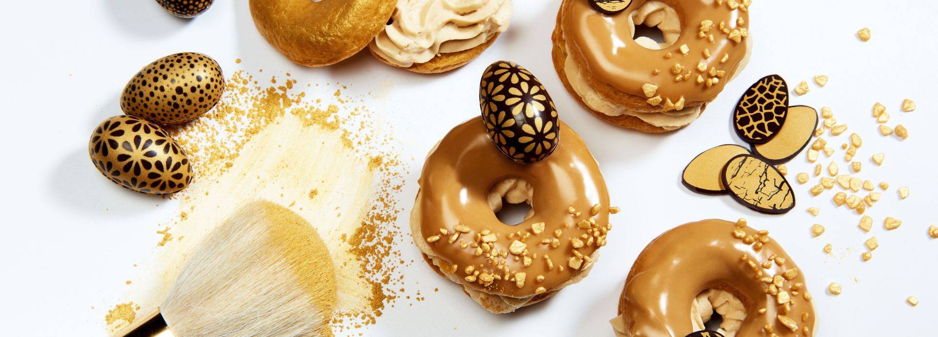 Glaze top layer of choux pastry with Gold Glazing.